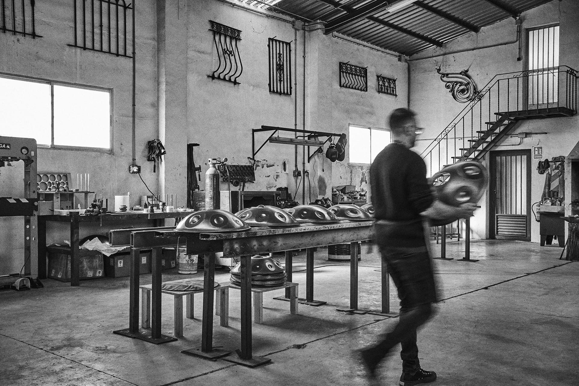 The Tiznajo Instruments atelier is a space filled with family tradition. Originally a forge dedicated to artisanal blacksmithing, the workshop has evolved into the place where our handpans are born. It is an environment where I feel at home, surrounded by the tools and materials I grew up with. Beyond that, the atelier is also a meeting point where musicians and clients can discover the process, take part in workshops, and immerse themselves in the world of the handpan, sharing experiences and learning along the way.