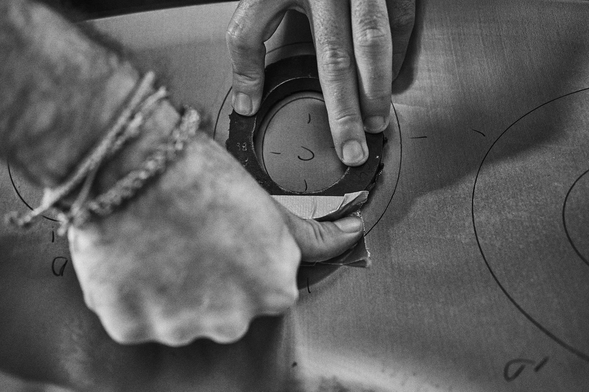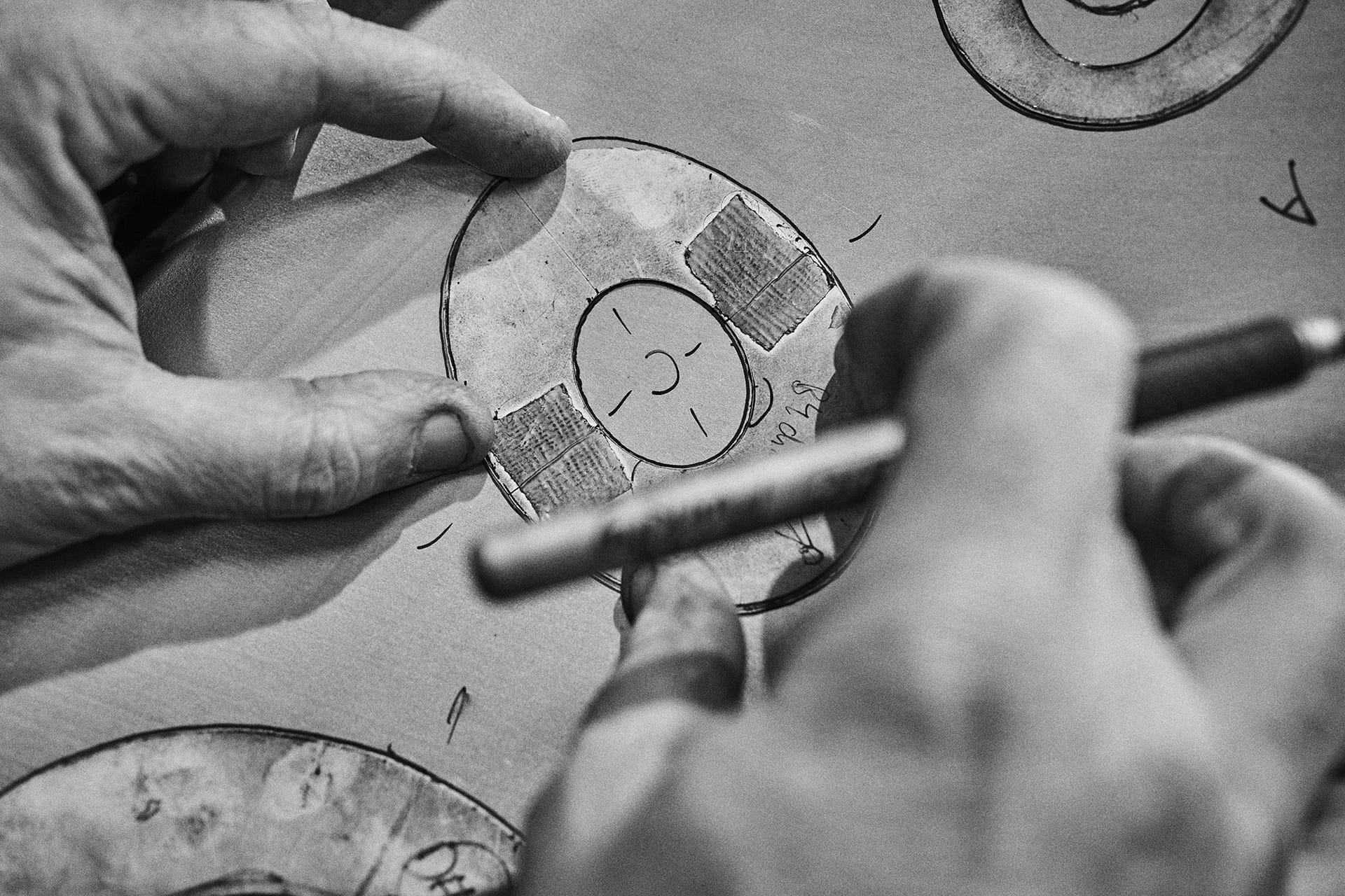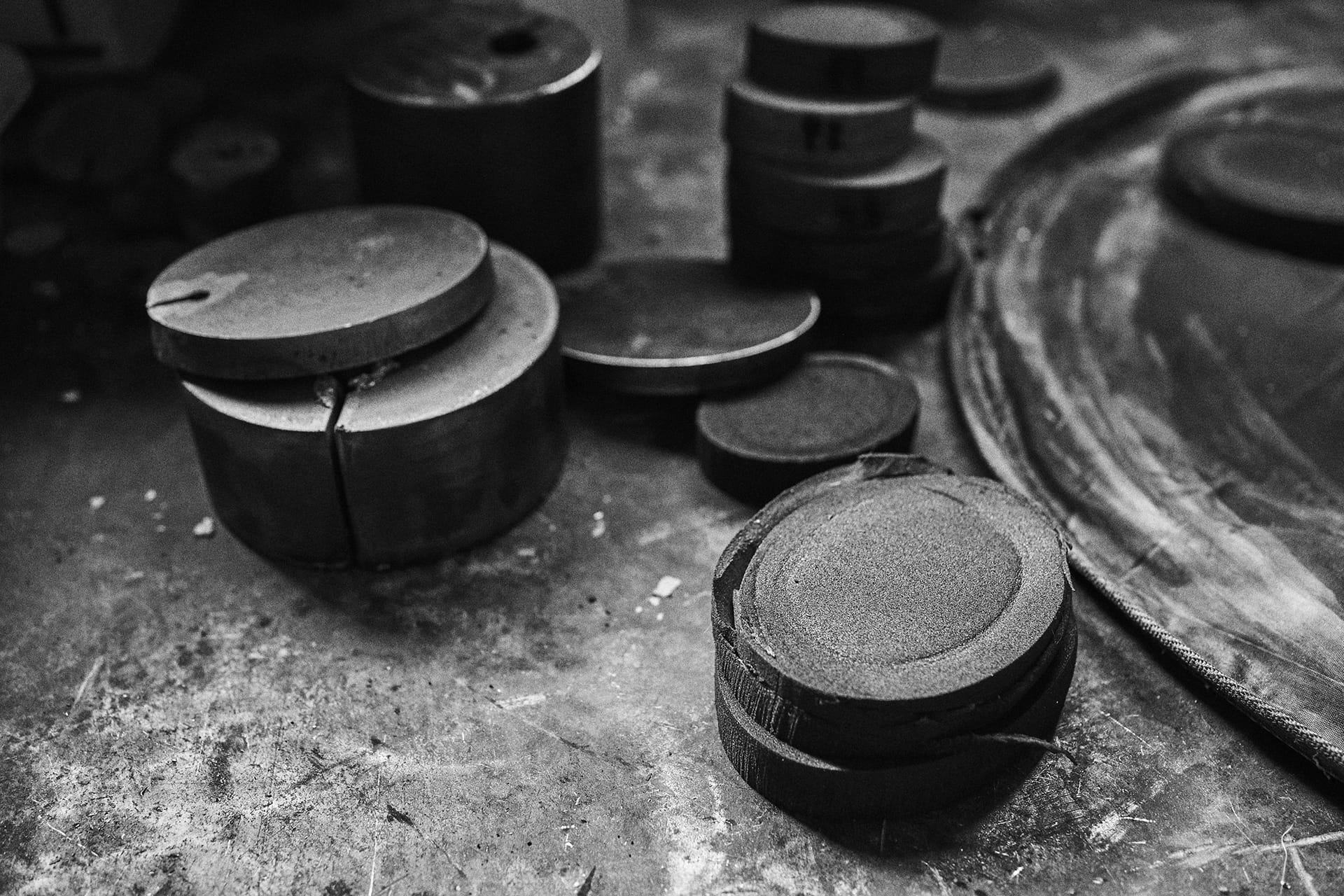 The creation of a handpan at Tiznajo Instruments begins with the meticulous drawing of the note positions, which vary with each model. The instrument is then shaped using molds, presses, and hammers, both manual and pneumatic. Afterwards, I alternate between tempering phases and hand tuning to ensure that the instrument maintains its tonal stability over time. Many of the tools I use are ones I have built myself, which allows me to adapt and continuously refine each stage of the process.